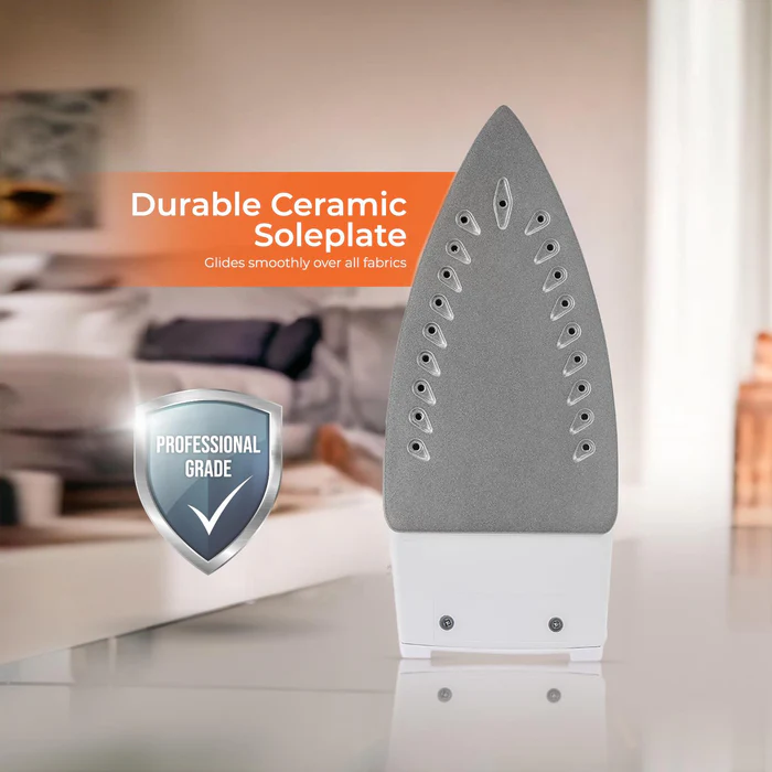 Non-stick ceramic soleplate prevents snagging