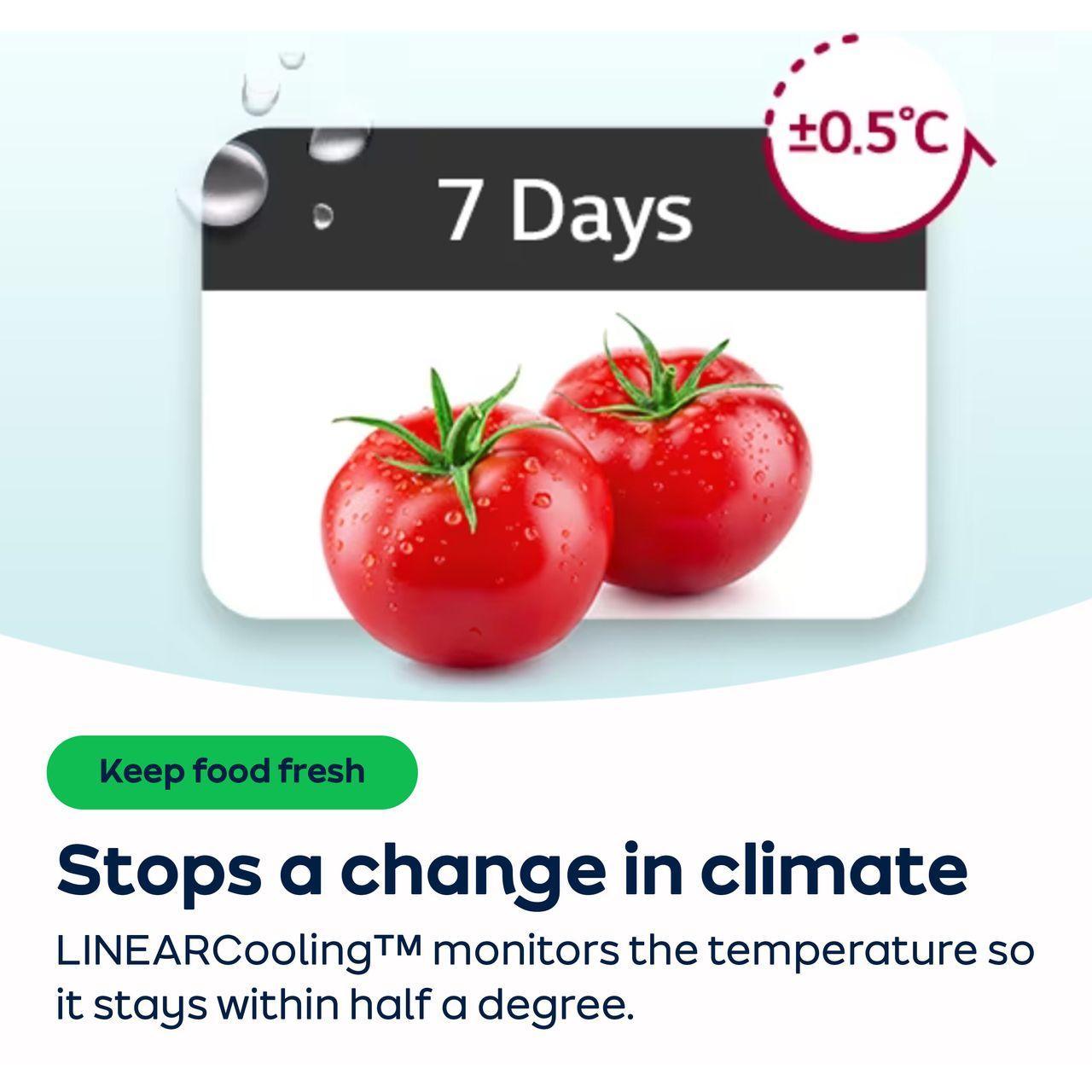 LG NatureFRESH™ uses DoorCooling+™ to provide fast cool air and makes door area temperature cooler and quicker than the conventional system, while LINEARCooling™ reduces temperature fluctuation, giving constant temperature to keep food fresh. Now you can enjoy fresh food and produce for longer.
