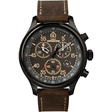 The Timex Gent’s Expedition Chronograph Watch T49905 is a timepiece designed for men. It features a brown analog dial matched with a brown leather strap. This timepiece is produced with chronograph features, a date display and glowing hands. It also comes equipped with a water resistance of up to 100 meters and is driven by a quartz battery