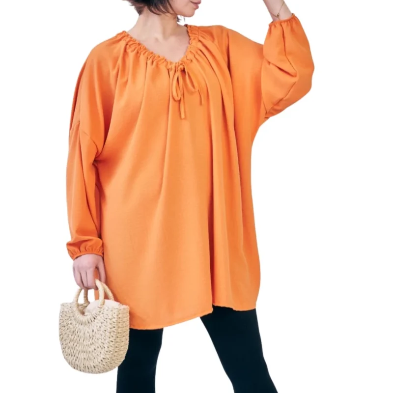 Drawstring Neckline Top – Plain Oversized