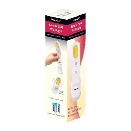 Infapower COB Wall Light is perfect for home, office, and garden. It’s 360 degree rotatable head provides a powerful beam of light. This wall light can be used as a handheld torch or can be wall mounted.