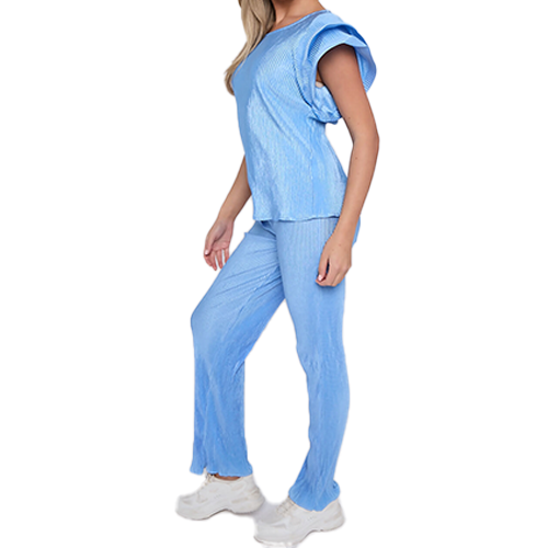 Wide Sleeve Plisse Top and Trouser Co-Ord Set