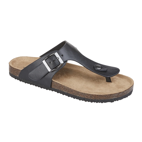 Women’s Sandal – TURIN Toe Post Mule Sandal – Black, with buckle fastening, that offer comfort and style on every step in summer.